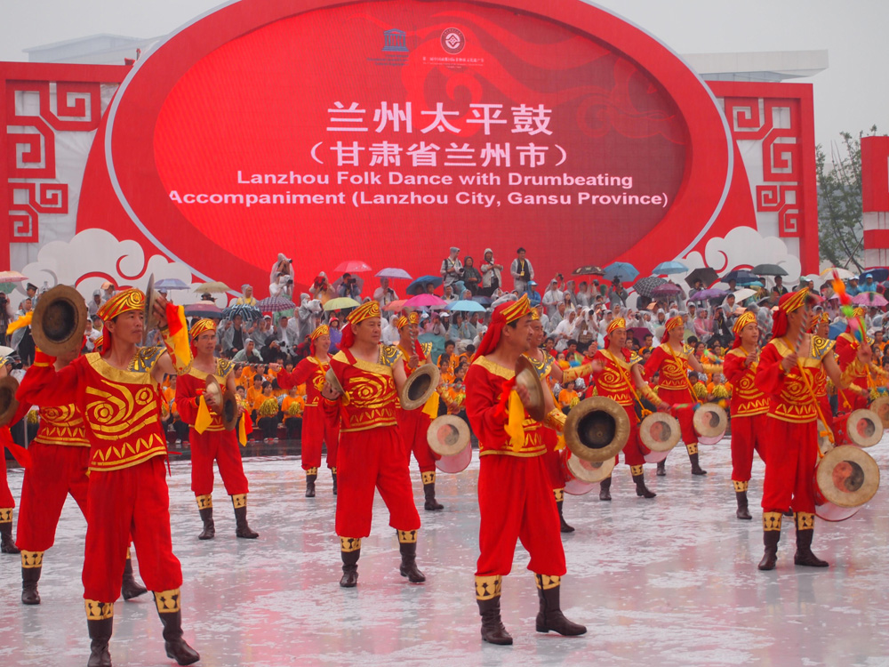 圖:素有「天下第一鼓」之稱的蘭州太平鼓舞亮相非遺節 本報攝