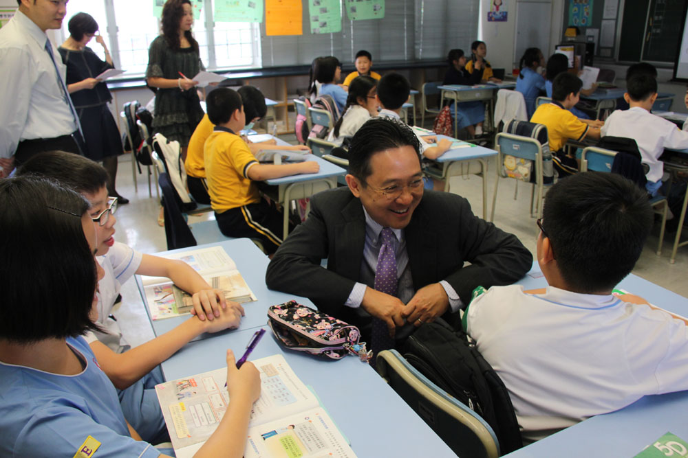 當天,陳副局長先參觀校園,然後接受學校小記者的訪問,再走進課室跟同學一起上課,並參與分組討論,跟學生分享工作和生活的經驗。