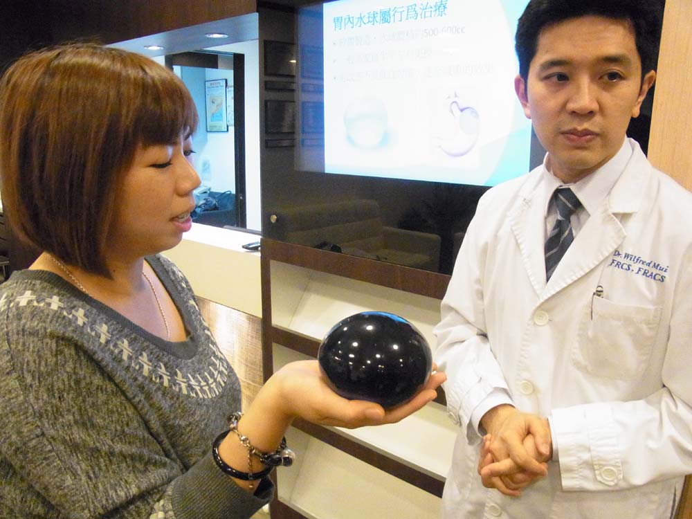 ○五年引入本港的胃內水球治療屬一種行為治療的減肥手法,主要適用於BMI逾二十五或飲食習慣不良的肥胖人士。醫生用內窺鏡將一個體積約500-600㏄的水球,放入胃中,以減少胃的容量和空腹感,藉此改善飲食習慣為目標減去多餘體重,而六個月醫生便會取出胃內的水球,治療亦告結束。