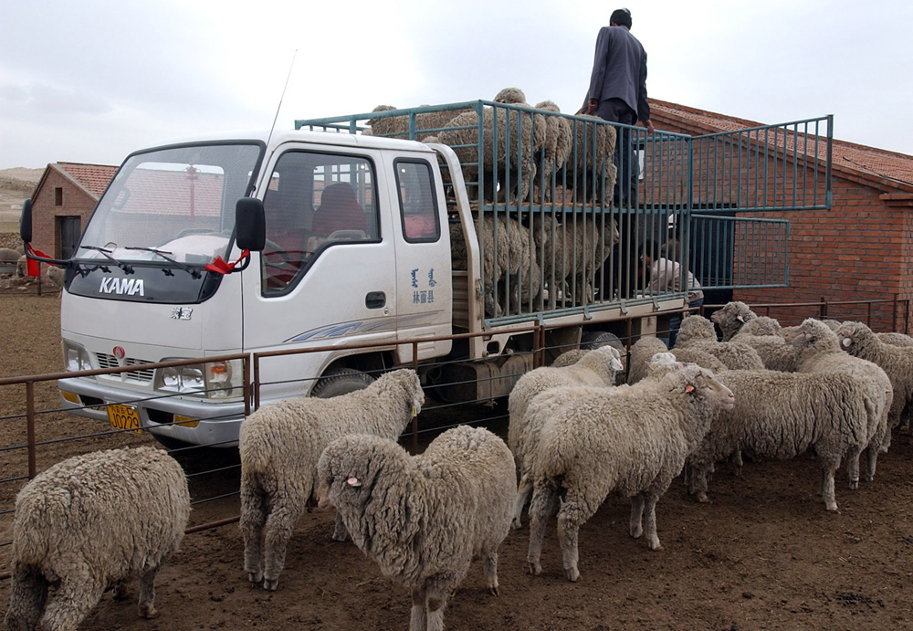 圖:呼和浩特牧民正在把羊隻裝車\新華社