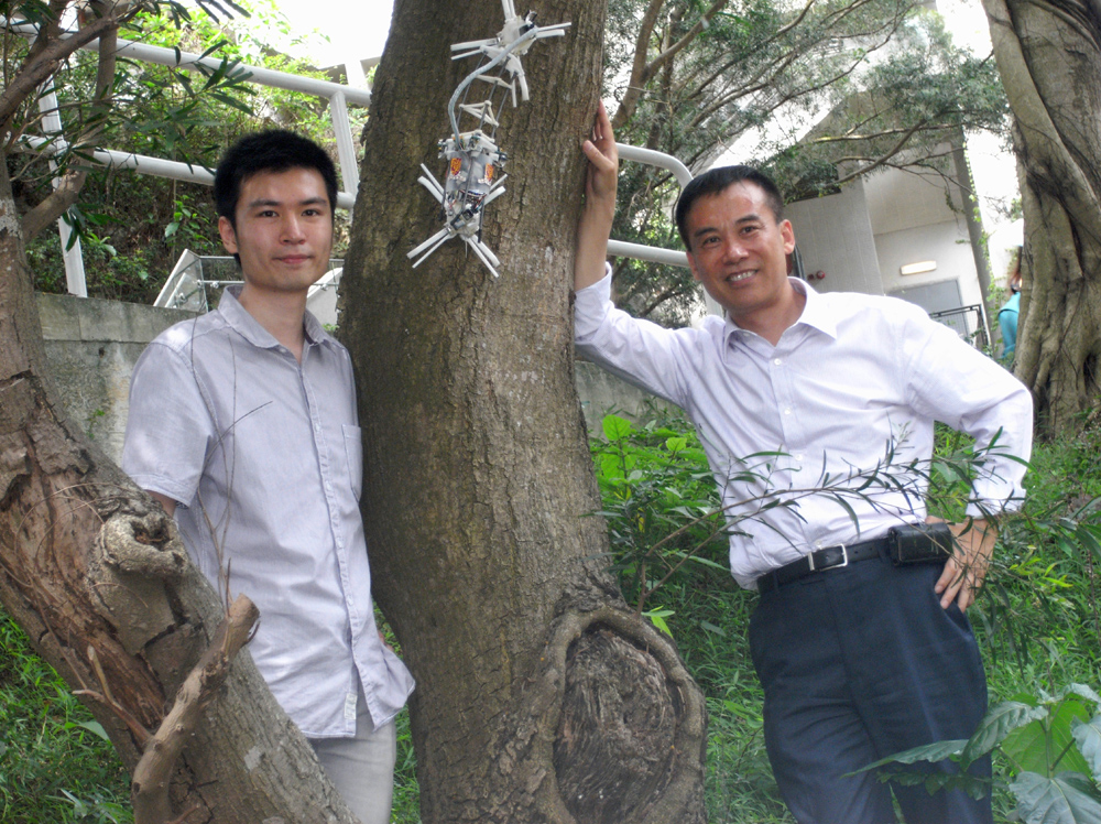 【本報訊】為樹木診症、防蟲再不是「樹醫生」的專利。香港中文大學副校長徐揚生研發全球最輕、靈活度最高、兼備三百六十度全方位活動能力的「爬樹寶寶」,代替工人爬上樹木檢查、即時治理病蟲工作。他表示,不排除將成本只需五千元以下的爬樹寶寶,推介至發展局樹木管理辦事處,成為樹醫生的好幫手。