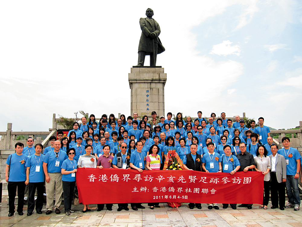 為紀念辛亥革命一百周年,香港僑界社團聯會日前組織了逾1,200名僑友、地區人士和青年學生,在訪問團團長、該會會長余國春的帶領下,浩浩蕩蕩赴中山、廣州,展開為期兩天的「香港僑界尋訪辛亥先賢足跡」活動。參訪團參觀了多個紀念孫中山先生和革命先烈的歷史遺址,共同緬懷革命先驅的豐功偉績。通過直觀的感受,令團友特別是年輕人加深了對中國歷史的認識,以及促使他們思考如何學習先烈貢獻國家。
