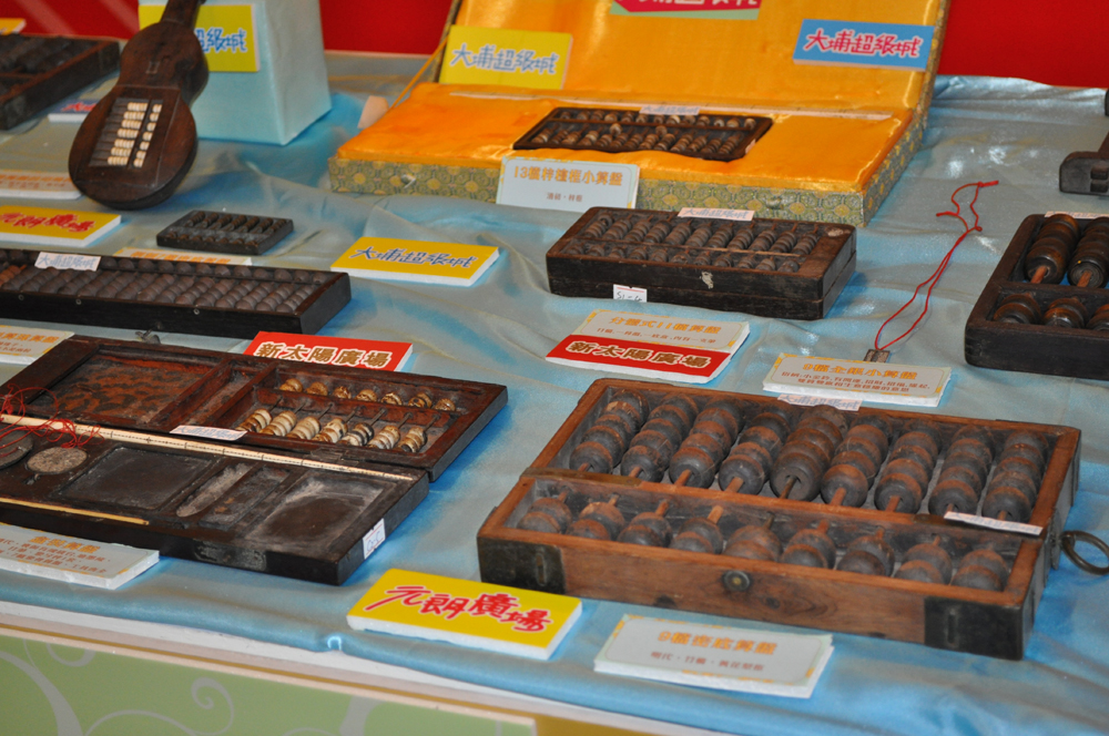 一般來說,算盤的檔數都為奇數,而展品中有一件二十六檔算盤,實在罕見。算盤除了作為計算的工具為人們使用,也是使用者身份和地位的象徵,大算盤通常象徵商家資金雄厚、信譽良好。像展品中的二十七檔密底算盤,便是為當時的大商人所擁有。是次展覽還有一件引人注目的展品─牛角算盤,它的算珠是用牛角製成。一頭成年牛的一對角只能做八粒算珠,此算盤共有一百零五粒算珠,需十四頭牛才能滿足需要,因此牛角算盤往往價值不菲。