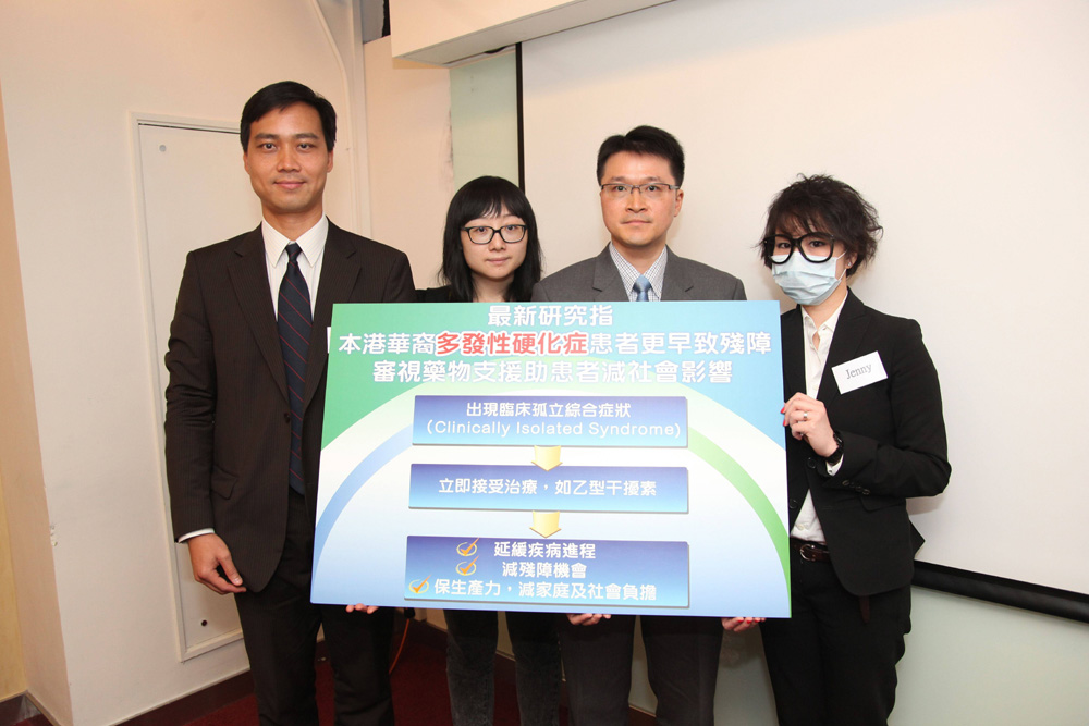 多發性硬化症是中樞神經系統疾病,因自身免疫系統失衡,導致神經組織出現炎症及結疤所致。患者會突然肢體無力、視力模糊及失禁,嚴重更會引致四肢癱瘓,甚至失明。本港華人發病率在過去二十年急升逾六倍,由一九八九年的每十萬人有○點八八名患者,飆升至二○○九年的每十萬人有五點五名患者。