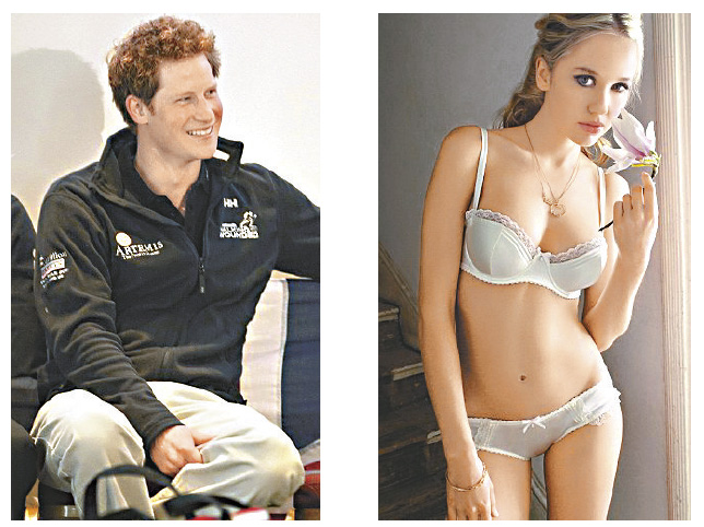 圖:26歲的哈里王子據稱正與25歲的內衣模特兒佛羅倫斯戀愛\互聯網