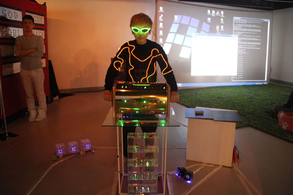 亦有同學將聲控燈裝置置於衣物上,設計者所穿「Tee恤」上的燈管隨着周圍的聲音而變幻明暗。