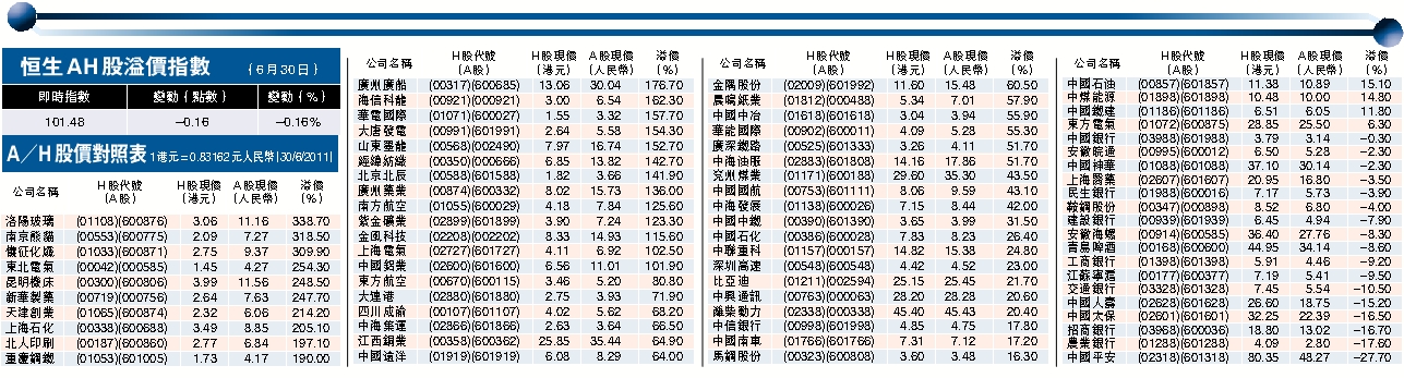 恒生AH股溢價指數