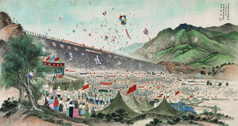 圖:中國畫《十三陵水庫落成典禮》,古一舟、松全森、周元亮