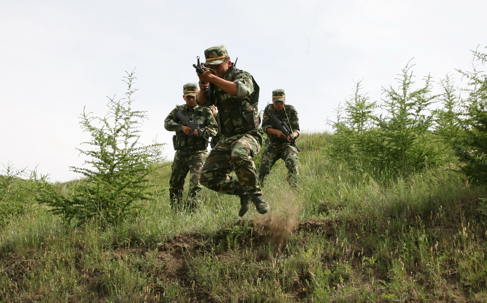 圖:近日,公安邊防部隊呼和浩特指揮學校民族大專班學員在駐地大青山老區,進行了代號為「飛翔2011」的野外任職能力綜合演練\新華社