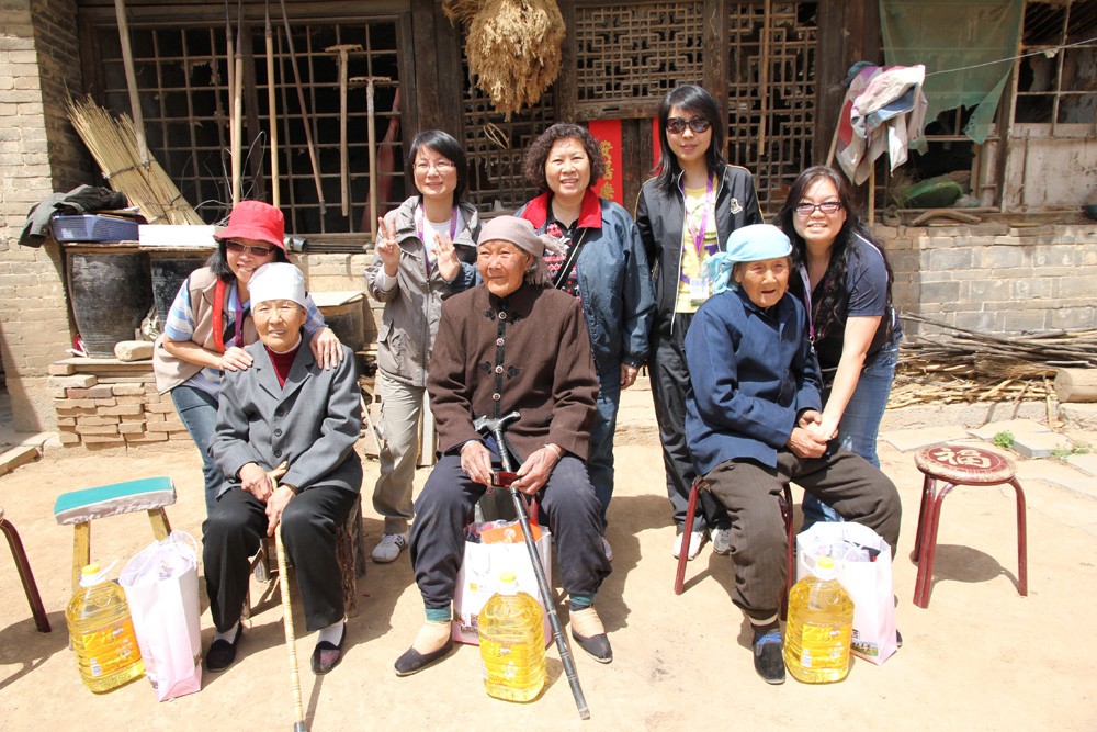 我們千里迢迢來到偏遠的羊泉村,看着曾遭受日軍糟蹋、世俗人嫌「髒」的老人。她們是萬愛花(年事已高,百病纏身,入住醫院)、張先兔、郭喜翠、李秀梅、劉面換、周喜香……她們都已白髮蒼蒼,憂傷的臉上布滿皺紋,那一條條深淺不一的紋絡就像一道道歷史的傷痕,記錄着過去、把人生的滄桑苦難刻畫在她們的臉上。我們走上前去,握着她們那乾枯的雙手噓寒問暖。雖然彼此不能用言語溝通,但是有一股股暖流湧進她們的心中──此時無聲勝有聲啊!