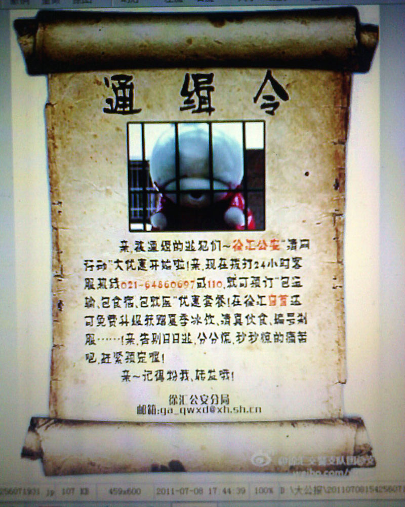 記者留意到,與其他《通緝令》嚴肅、嚴謹的措辭不同,該份《通緝令》使用了目前盛行內地網路的「客服體」,正文部分寫道:「親,被通緝的逃犯們,徐匯公安『清網行動』大優惠開始啦!親,現在撥打24小時客服熱線:021-64860697或110,就可預訂『包運輸、包食宿、包就醫』優惠套餐,在徐匯自首還可獲贈夏季冰飲、清真伙食、編號制服……親,記得粉我,轉發哦。」
