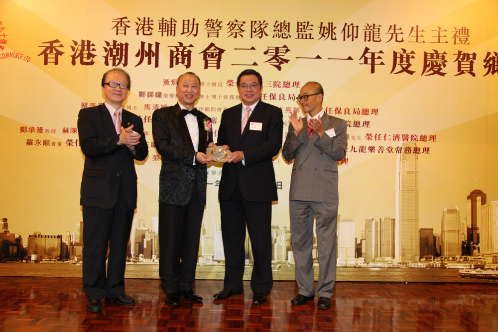 【本報訊】記者黃穎雅報道:香港潮州商會日前在潮州會館十樓禮堂舉行晚宴,宴賀二十四位鄉彥榮任各慈善團體要職,香港輔助警察隊總監姚仰龍應邀出席主禮。香港輔助警察隊副官卓振聲;潮州商會會長陳幼南、副會長張成雄、廖鐵城、胡劍江;永遠名譽會長陳維信、劉奇喆、唐學元、陳偉南、蔡衍濤、許學之;名譽會長藍鴻震等首長、會董及受賀鄉親及來賓共聚一堂,同賀鄉彥榮任要職。