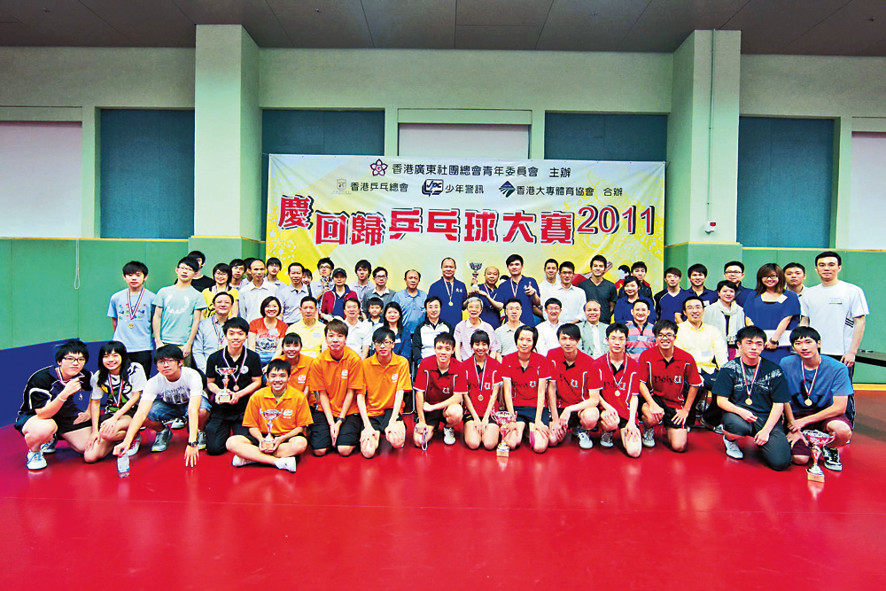 由香港廣東社團總會青年委員會主辦、香港乒乓總會、少年警訊和香港大專體育協會合辦的「慶回歸乒乓球大賽2011」日前假九龍歌和老街壁球及乒乓球中心四樓圓滿舉行。香港廣東社團總會主席王國強、外交部駐港副特派員高玉琛、中聯辦新界工作部副部長葉虎、香港乒乓總會主席余國樑、少年警訊總督察沈靜芬、香港大專體育協會主席周冠華、香港廣東社團總會副主席鄧祐才、副秘書長陳少洪等首長領導應邀出席主禮,與參賽隊伍一同分享喜悅。