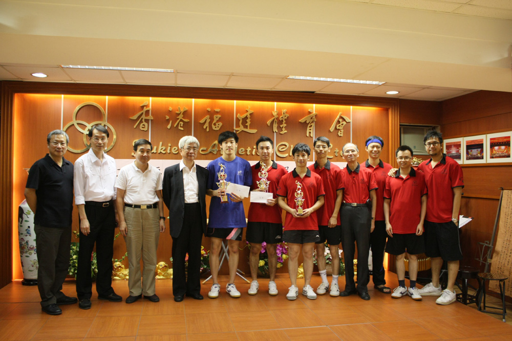 中聯辦協調部副部長李新樂、該會理事長施維雄、永遠榮譽會長李群華、監事長陳榮旋、副理事長吳少白、永遠名譽會長柯文華分別向獲勝選手頒發獎金及獎杯,鼓勵大家再接再厲,爭取更好成績。香港福建體育會乒乓球隊成立於中國掀起乒乓外交熱的1970年,多年來積極參加香港乒乓球總會和各社會團體主辦的全港性賽事,成績不俗,而且曾主辦「福建杯」乒乓球全港團體公開邀請賽達十八屆之多,去年開始舉辦乒乓球男女單打錦標賽,廣受香港乒乓球愛好者的歡迎和好評。