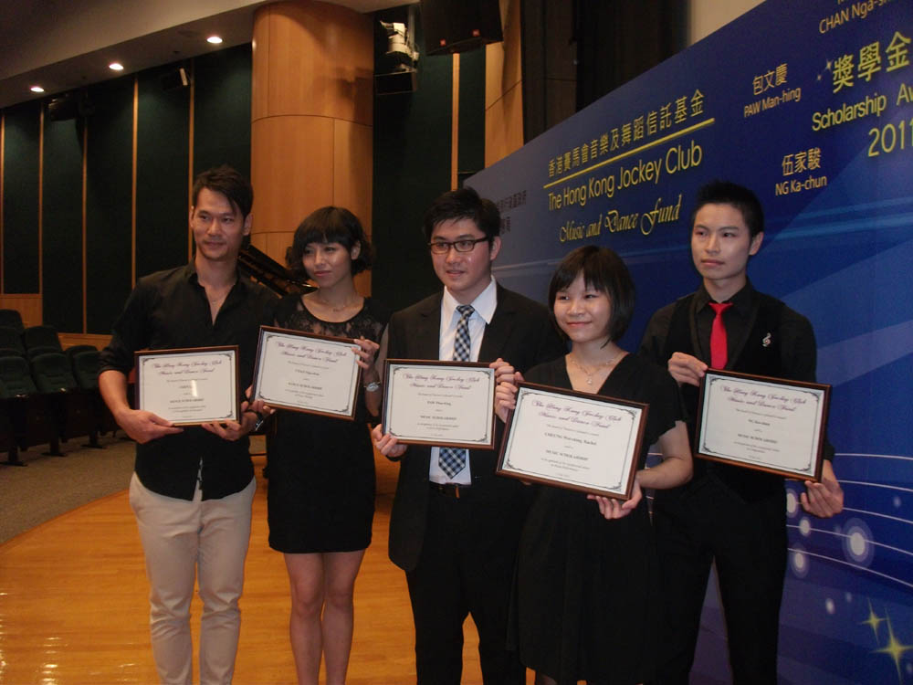 【本報訊】實習記者陳佳敏報道:六位年輕音樂和舞蹈人才昨日獲得香港賽馬會音樂與舞蹈信託基金音樂及舞蹈獎學金,將分赴美國、英國及中國深造。香港舞蹈團成員及香港演藝學院兼職教師陳磊(圖左一),成為獎學金設立以來第一個到內地攻讀研究生的得主,研究中國民族民間舞職業化。