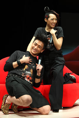 圖:卓韻芝(右)在台上摸黃宗澤的胸,事後表示很結實
