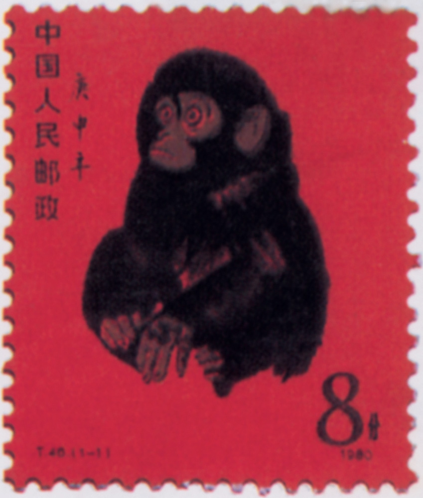 反而一九八○年發行的第一枚中國生肖郵票《金猴》(見附圖),與筆者總算有點兒緣分。數年前,偶閱一本二十多年前從舊書店購得的早期國郵雜誌,內頁竟匿藏了數單枚和一方「六方連」《金猴》全新票(未蓋銷),乃上手物主遺下,但筆者一直沒有發覺,才保留迄今。邇來,市場因求過於供而「熱炒」此票,致價值飆升;不過亦非什麼珍罕品(其實際印數減半也有四百三十萬枚)。由於該數枚《金猴》既與筆者有緣,也就繼續保存下去。