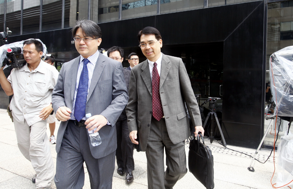 圖:陳永孫(右一)的品格證人證供,因格式有問題,需押後遞上