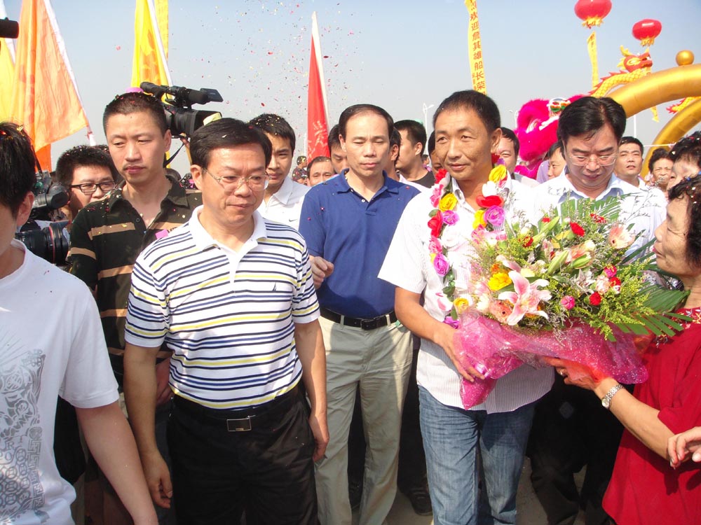 圖:去年9月26日,詹其雄回到晉江深滬老家,受到鄉親們「英雄式」的夾道歡迎鄧德相攝