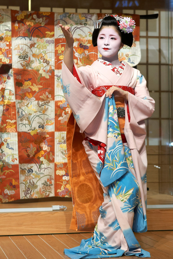 在展覽揭幕禮上,京都著名舞伎「とし愛」関根由佳表演了日本傳統舞蹈,現場更有專人為模特兒示範穿上價值五十萬港元的古代皇室貴族嫁衣─「十二單衣」。