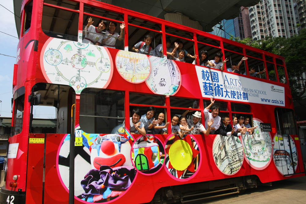 【本報訊】實習記者馬詩蘊報道:電車是香港具有較長久歷史的交通工具。未來一個月,市民將有機會看到電車與校園藝術的結合。四架「藝術電車」昨日正式啓行,將在未來一個月於港島區行駛。每部「藝術電車」均以十二組「藝術電車:夢幻遊樂場設計比賽」的獲獎作品作為外觀,展示予公眾觀賞。在電車上展示的原作,將於九月中旬於尖沙咀K11購物藝術館展出。