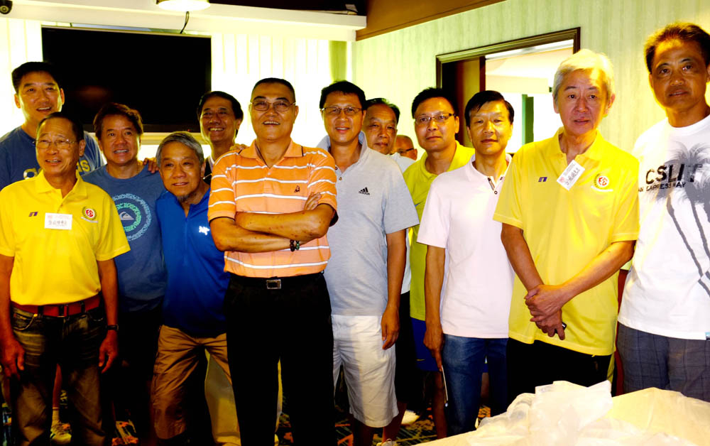 圖:包括胡國雄(右二)、朱國權(右一)、陳世九(右三)、鍾楚維(左六)在內的香港球圈名宿,將在慶祝卜公體育會四十周年的邀請賽或表演賽中獻技\本報攝