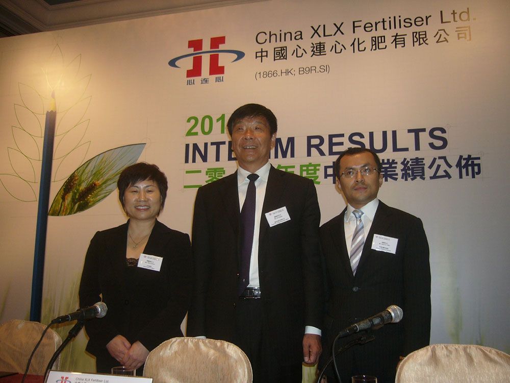 圖:左起:中國心連心化肥執行董事兼首席財務官閻蘊華、董事長兼首席執行官劉興旭、投資者關係總監姚傑