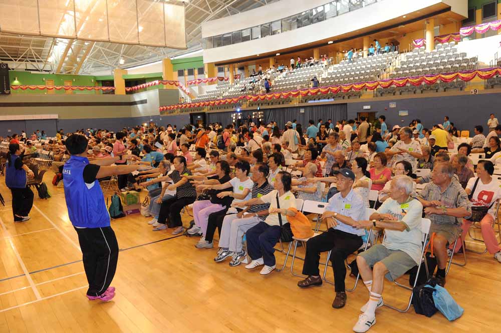 圖:康文署日前在全港十八區指定體育館舉辦多項免費康體活動。圖為市民在馬鞍山體育館參與健體活動
