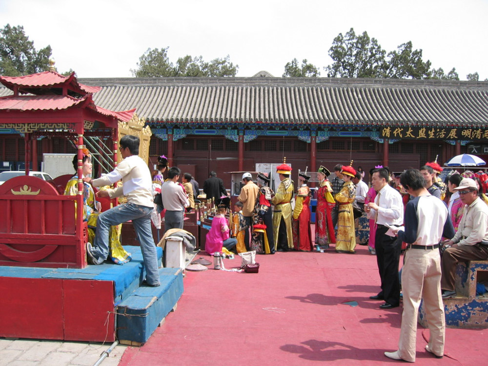 圖:故宮承認2009年的部分門票收入的確被導遊和警衛人員私下分成。至於圖中穿清裝扮皇帝、扮太后、扮王妃、扮太監的收入是否又被有關人士私吞,就不得而知了\張靖唯攝