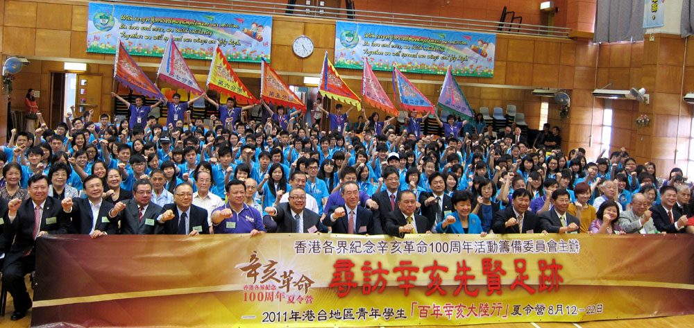 日前,由香港各界紀念辛亥革命100周年活動籌委會和國務院僑務辦公室主辦的尋訪辛亥先賢足跡——2011年港台地區青年學生「百年辛亥大陸行」夏令營假福建中學附屬學校禮堂隆重舉行開營式,中聯辦副主任殷曉靜,特區政府政務司司長唐英年,外交部駐港副特派員李元明,香港各界籌委會主席團執行主席余國春、名譽主席陳永棋、夏令營總指揮龍子明主禮。於12日起至8月22日的11天內,300多位港台青年學生將由南至北,走訪香港、中山、廣州、武漢、南京、北京等地,參與一系列豐富多彩的活動。