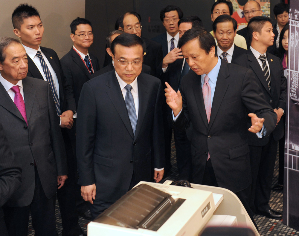 圖:國務院副總理李克強(中)昨到港交所參觀。旁為港交所行政總裁李小加(右)及主席夏佳理