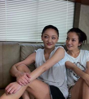 圖:周迅(左)和趙薇於劇組一同化妝,一同坐,未如外傳不和