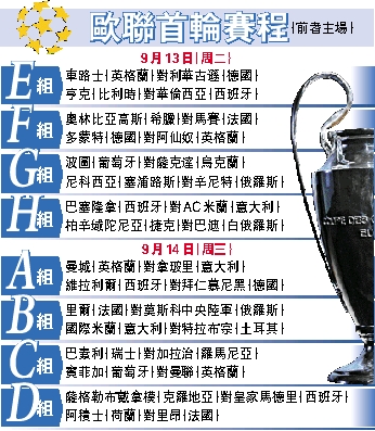 「銀河艦隊」皇家馬德里連續2屆與荷甲阿積士同組,還有「剋星」里昂,但以今屆的皇馬來說,應可輕易過關。上屆盟主巴塞隆拿就與7屆冠軍AC米蘭同組。