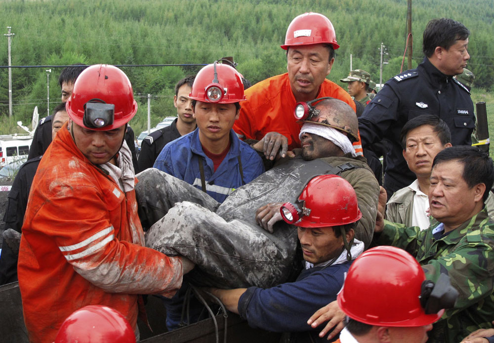 圖:七台河煤礦透水事故救援人員30日在井下救出19名被困礦工 路透社