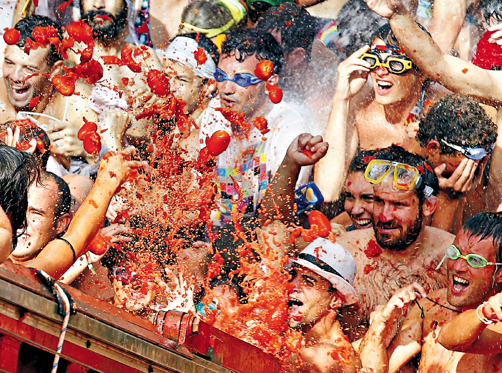 舉辦方建議參賽者戴上護目鏡,穿上可以用過就扔的舊衣服。隨着5輛大卡車將120噸番茄傾倒在地,成千上萬的「戰士」抓起這些熟透的紅色果實,向「敵軍」投擲,街道上不一會兒就成了一片紅色果漿的海洋。