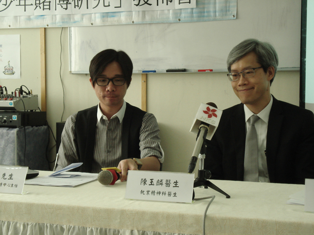 圖:工業福音團契問題賭徒康復中心主任劉嘉成(左)及精神科醫生陳玉麟(右)分析青少年沉溺賭博的演變與求助原因