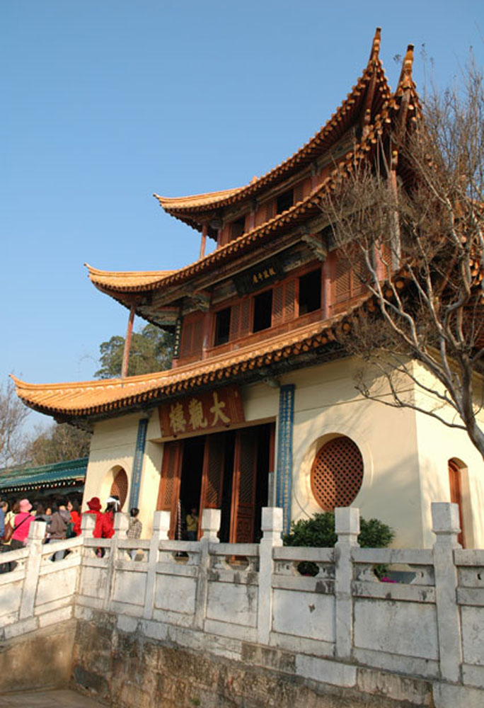 長聯中的「漢習樓船,唐標鐵柱,宋揮玉斧,元跨革囊」記錄了中國歷史上四個朝代在雲南發生的歷史事件。而「宋揮玉斧,元跨革囊」兩個典故《忽必烈風雲傳》中有具體解讀。「宋揮玉斧」說的是公元九六○年,宋太祖趙匡胤陳橋兵變,奪取後周政權,建立宋朝後,曾試圖一舉收復大理,但由於大渡河水流兇險,宋軍無法涉水渡江。傳說趙匡胤用玉斧指着地圖上的大渡河嘆曰:「此外非吾所有也。」由此將雲南大片土地排除在宋朝版圖之外。而「元跨革囊」則記錄了元朝對大理的收復過程。一二五二年忽必烈向其兄蒙哥汗提出了征服大理國,然後從側背形成對南宋包圍的戰略構想,初步顯示了他的軍事才能。第二年,忽必烈便率十萬大軍經四川,翻越瓦哈山(今大藥山),來到今寧蒗縣境內的金沙江邊。此時,忽必烈同樣面臨着當年趙匡胤的問題─進或者退。忽必烈利用牛羊皮製成革囊,將革囊用繩索綁在縱橫交錯的木棍或竹子上,順利地渡過了金沙江。「宋揮玉斧」注定了趙匡胤和大宋王朝先天的軟弱和不思進取;而「元跨革囊」則不僅概括了忽必烈氣勢磅礴、橫渡金沙江的壯舉,更預示了忽必烈胸懷遠大,統一中國的雄心和功績。
