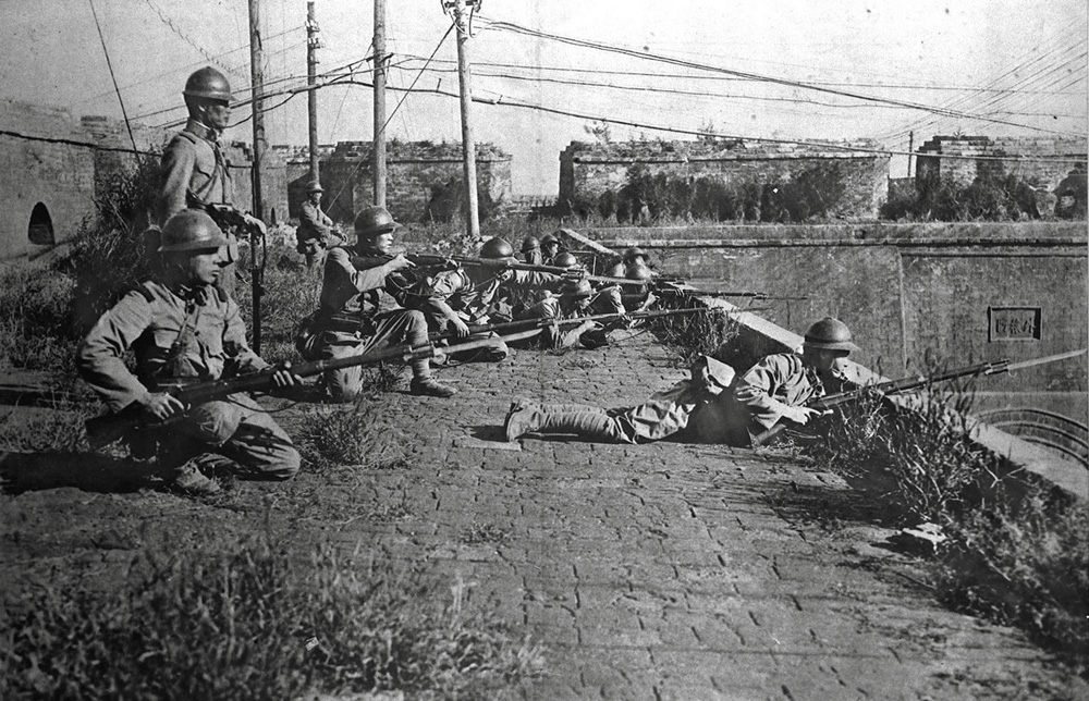 圖:「九一八」事變次日晨,日軍在瀋陽外攘門上向中國軍隊進攻 資料圖片