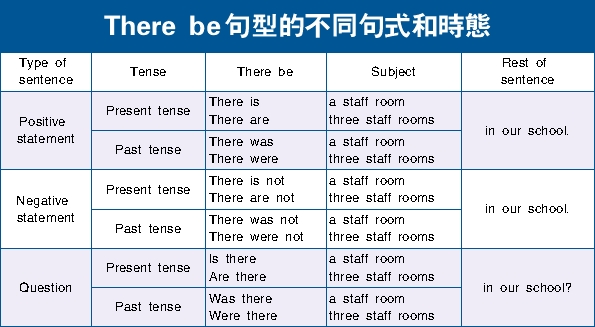 某次觀看一堂中一英文課,教學內容為there be句型。據授課教師反映,學生在小學高年班雖已學過there be句型,卻常將there be和have(has)混淆,甚至到了高班,還有同學錯用以下句子:「There has a table in my room.」或「My room has a table.」(正確句子應為「There is a table in my room.」,中文翻譯:我的房間有一張桌子)由於中一教材關於Facilities(設施)的單元要求教師教授there be句型,所以該校教師決定在中一將there be句型的不同句式再教一次(見表一)。上課時,教師先呈現這些句式,再讓學生使用不同句式介紹海洋公園和赤柱廣場的不同設施,並進行角色扮演。(見表一)
