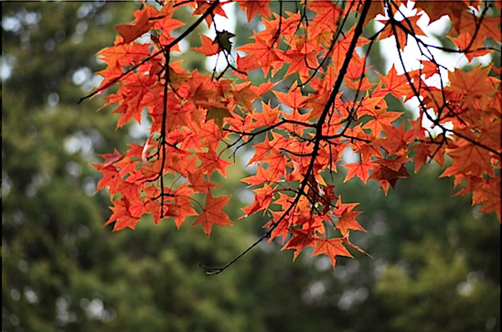 代表秋天的楓樹之美,並不僅在那經霜的素紅,而更在那臨風的颯爽。