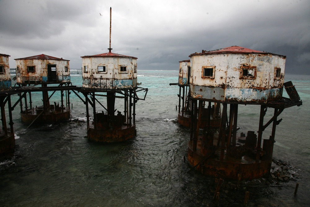圖:美濟礁上第一代高腳屋,守礁人員曾在這樣艱苦的環境中守衛海疆 中新社