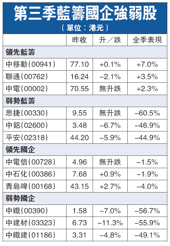 民企投資風險暴升,加上環球股市轉差,民企股自然成為基金洗倉對象,內房股則是重災之一。恒大地產挫17%,報2.44元,雅居樂(03383)跌13%,報5.15元;兩隻內房股在第三季累瀉51%及57%。另一隻民企股亞洲果業昨日更急挫27%,報3.62元,是跌幅最大股份,上季要跌48%。