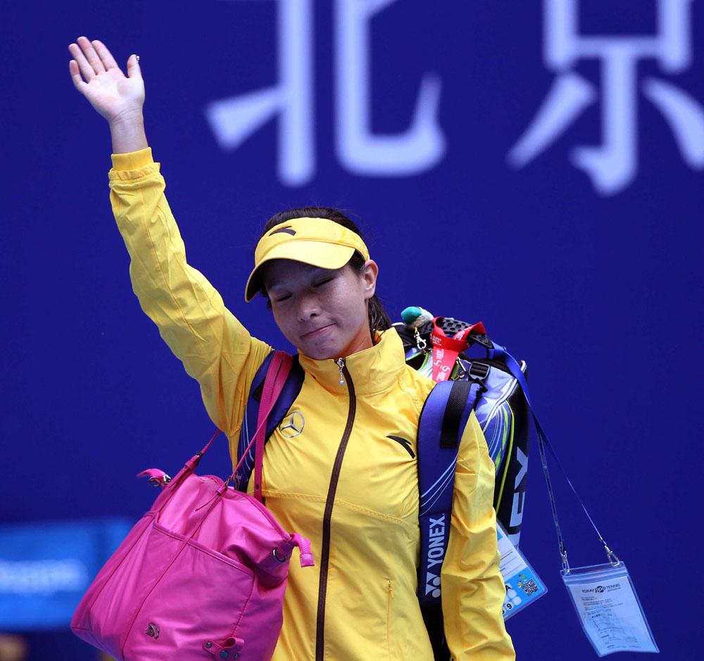 圖:鄭潔離開賽場時向觀眾致意\新華社