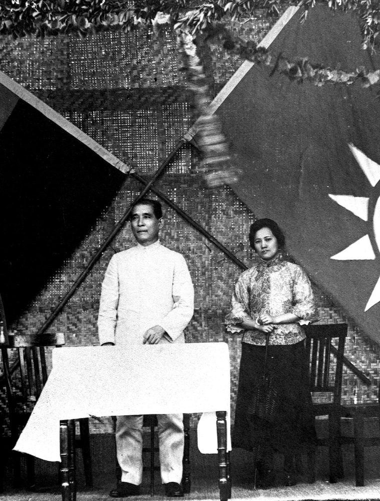 圖:1924年6月16日,孫中山和夫人宋慶齡在黃埔軍校開學典禮上