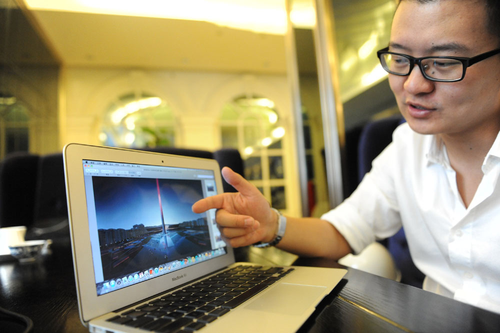 圖:徐東昕介紹,紀念碑將有十八個紅色的大光柱,照亮幾公里範圍的天空\中通社