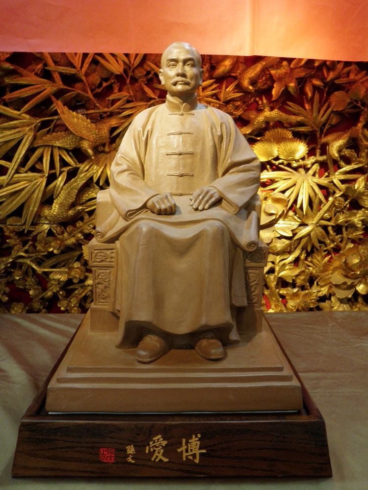 從整體看,《孫中山》主要從寫實手法塑造人物形象,但作者在運用嫻熟的傳統技藝同時,糅合現代雕塑元素,如作品的衣紋處理捨棄了細琢而以厚重的塊面展現。採用大面積的塊面處理與臉部及手的精細刻畫,使作品形成鮮明的對比,一繁一簡,一粗一細,中西技法的融合,使作品形神兼備,相得益彰。