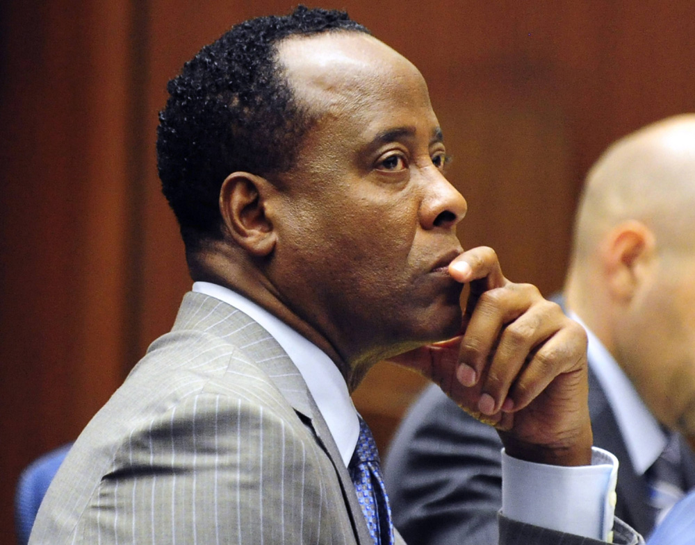 法庭周二向陪審團展示一幅米高的全裸遺照,是從高處向下拍攝的,下體部位被遮蓋。照片顯示米高的雙手和雙腳有多處貼了膠布和紗布,那些都是注射藥物時造成的傷口。