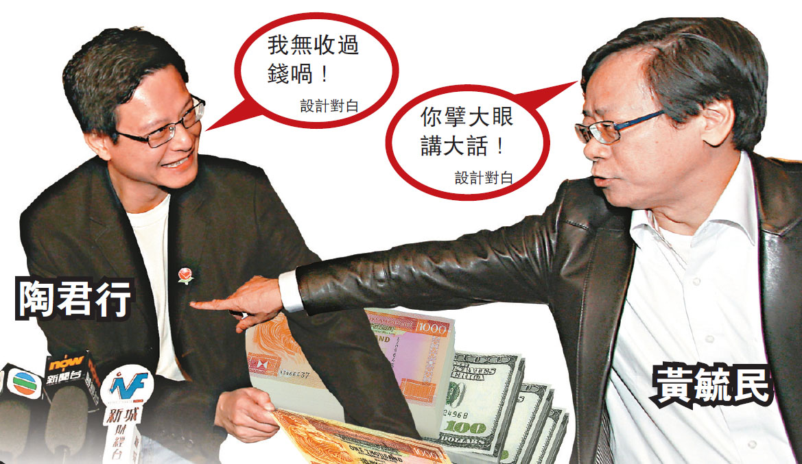 對於陶君行否認社民連收過黎智英一百萬巨款,黃毓民雖說「不回應」,但就不斷「數落」陶君行的不是,直指對方「擘大眼講大話」,更揚言要到廉政公署舉報事件。「報道寫明二○一○年二月十號給陶君行一百萬,如果不是捐給社民連,就可能是捐給陶君行,但我們完全不知道,他所講的都不盡不實。人哋寫明畀你陶君行,點可以話無?一定要ICAC(廉政公署)查。」