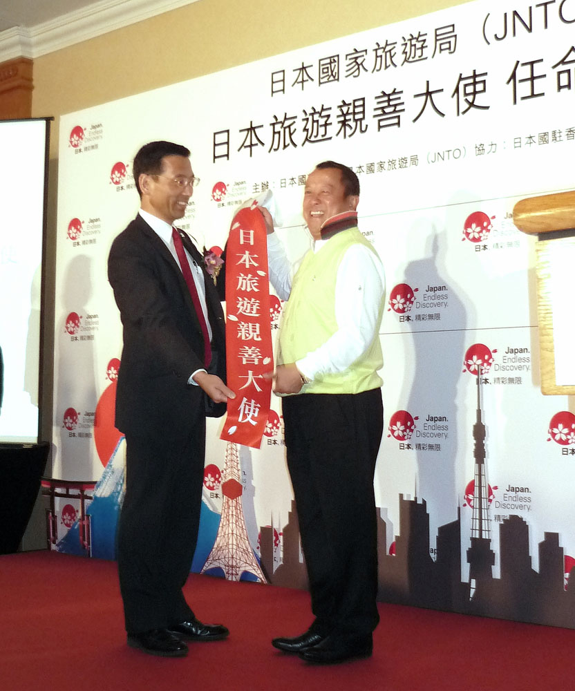 圖:志偉(右)出席日本旅遊親善大使任命儀式