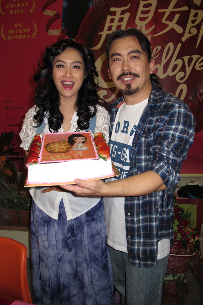 圖:劇組為朱茵(左)送上蛋糕為她慶生,旁為陳淑儀